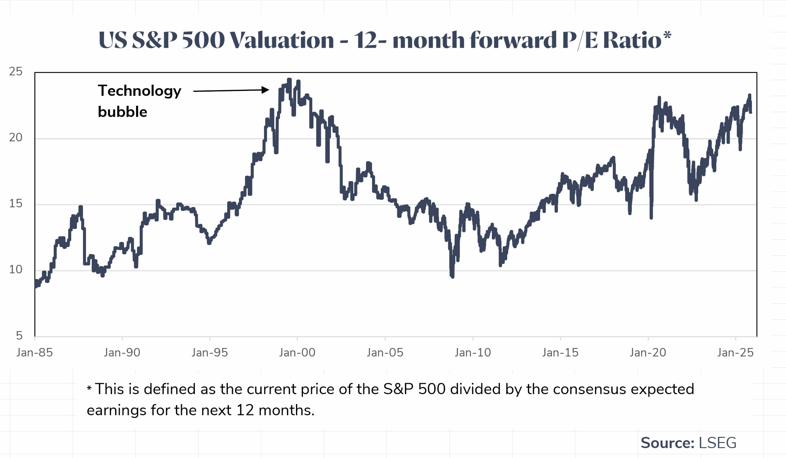 Over recent months, investors have begun making comparisons between the current period and the technology bubble. For example, material technology change was a major driver of the US equity market during the technology bubble and that is also the case today. Another similarity is very rapid investment in the new technology. In the technology bubble, it was the fibre optic cables that underpinned the internet. Today it is the large language models and data centres that underpin AI tools.